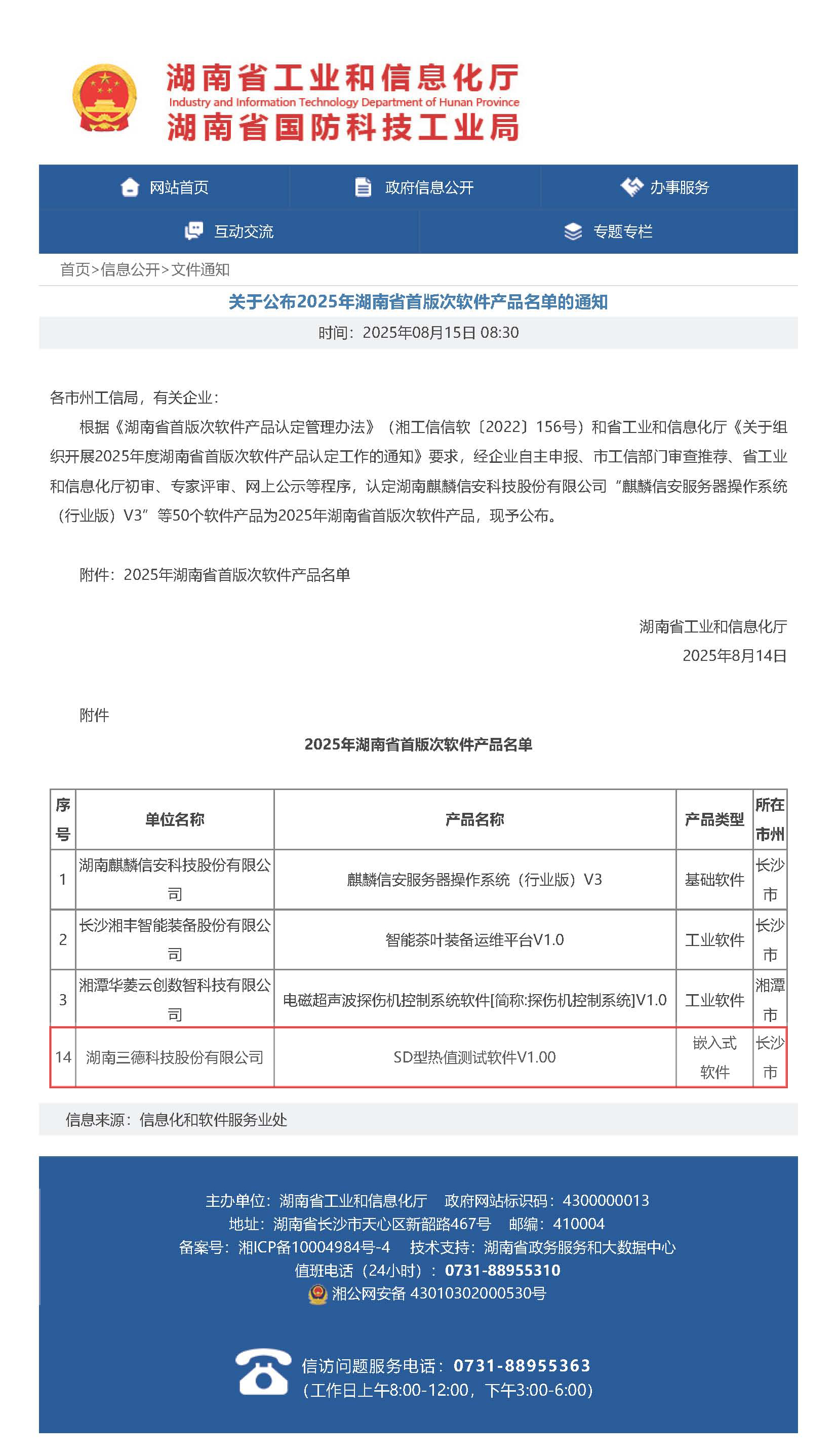 近日,湖南省工业和信息化厅公布《2025年湖南省首版次软件产品名单》,mg电玩娱乐在线网址科技自主研发的“SD型热值测试软件V1.00”成功入选。
