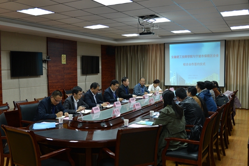 学院副院长任建设重点介绍了学院办学特色、办学理念、专业设置、学生就业、校企合作等方面的情况,期待双方能在校企合作的内容和模式等方面进一步深化,互惠互利,实现双赢。随后,与会嘉宾观看了学院的专题宣传片。宁波市保税区潘孝松主任重点介绍了保税区经济状况、产业及企业发展情况以及对企业人才需求情况,表示与我院合作充满信心,希望能建立更长远、更深入的合作,探索出一条政校企合作的发展之路。同时也非常欢迎学院更多的优秀毕业生到宁波保税区就业和发展。三家企业代表还对本企业进行了重点介绍。