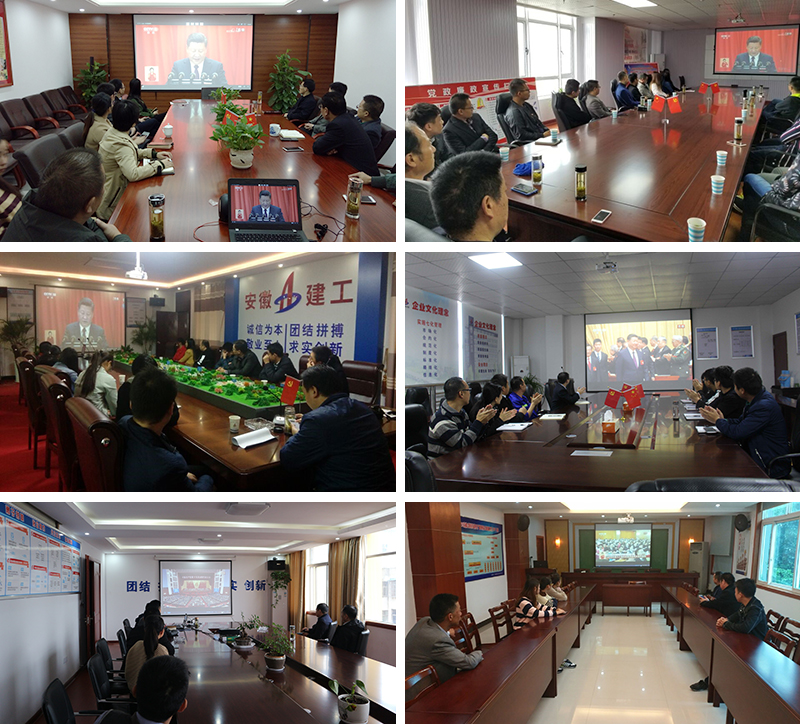 上午一上班,安建投资所属各项目公司员工早早来到各个收看现场,怀着激动的心情等待大会开幕。9点整,大会正式开幕。大家聚精会神地聆听习近平同志的报告,并不时记录。