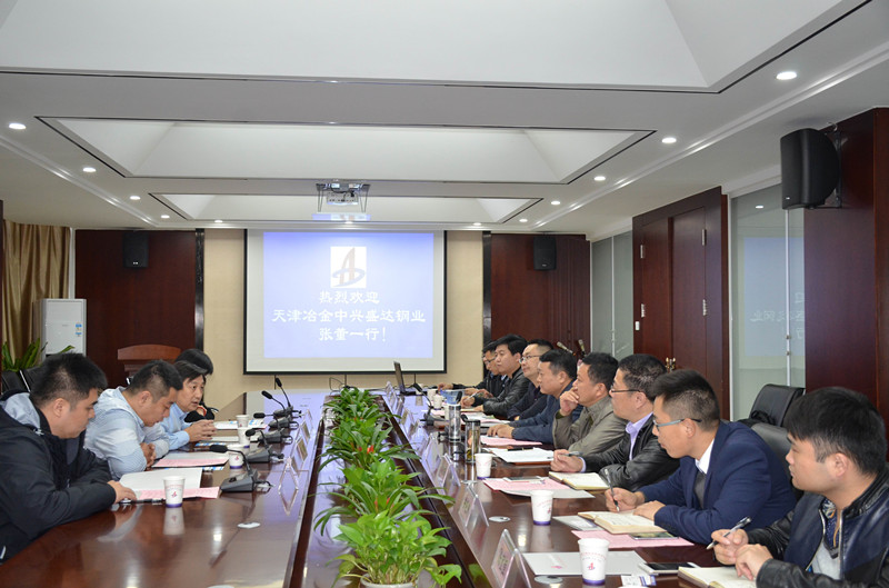 10月30日下午,天津冶金集团中兴盛达钢业有限公司董事长张宏达一行到我公司洽谈业务,公司党委副书记、纪委书记胡运春,党委委员、副总经理徐友修热情接待了张宏达一行,并举行了业务洽谈会,公司相关单位及部门负责人参加洽谈会。