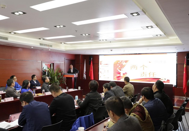 王书记结合当前政治形势,从提出背景、具体内容、落实要求等方面对“两个责任”进行了系统阐述和深入解读,同时结合违反“两个责任”相关案例,深刻警示大家要严守党纪党规,自觉加强廉洁自律意识。他指出,党风廉政建设主体责任和监督责任是党章赋予各级党委和纪委的重要职责,是深入推进党风廉政建设和反腐败斗争的“牛鼻子”。落实“两个责任”,一是党员领导干部要始终坚持守土有责、守土负责、守土尽责;二是要加强制度建设,把权力关进制度的笼子里;三是要加大监督检查和责任追究力度,坚持“一案双查”。