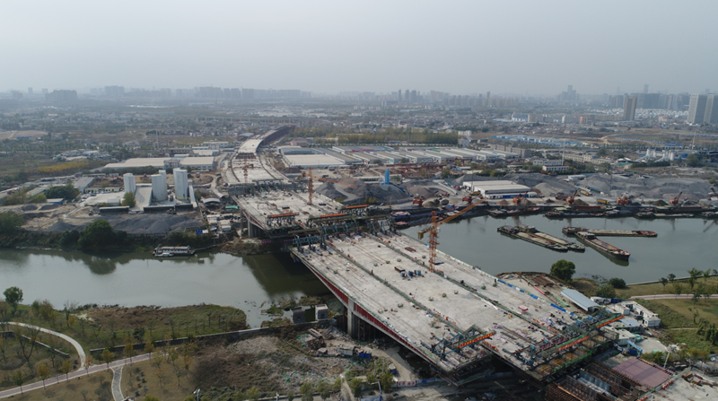 南淝河大桥是郎溪路(包河大道-裕溪路)工程的重要组成部分,全长343m,主跨153m。大桥分三幅布置,左、右幅宽19m,中间幅宽26m,幅间距均为1m,主桥上部结构为三跨波形钢腹板预应力混凝土连续箱梁。