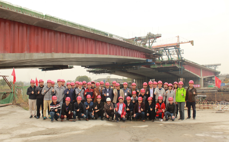 12日上午,与会人员参观了安徽路港承建的郎溪路高架项目南淝河大桥施工现场,对该工程的施工质量以及安全文明管控给予了高度认可,对安徽路港公司在波形钢腹板桥梁施工方面做出的积极贡献给予高度赞扬。