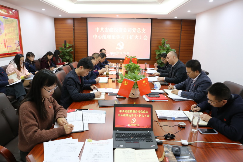 12月4日,安建投资公司党总支组织召开中心组理论学习(扩大)会,继续把学习宣传贯彻党的十九大精神引向深入。公司党总支班子成员,机关各部门全体员工参加学习。会议由安建投资公司党总支书记、副总经理余志刚主持。