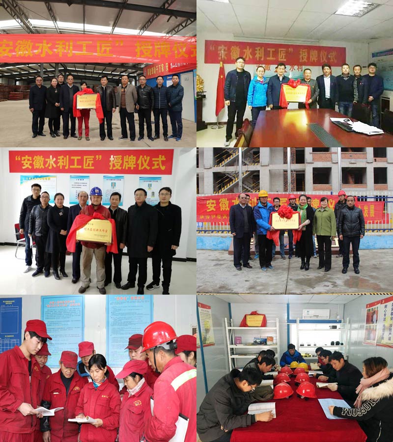 2017年,安徽水利工会开展首届“安徽水利工匠”评选活动,将视角聚焦到基层一线操作工人,广泛选树岗位技术创新和技术成才的榜样,共评选出5名“安徽水利工匠”。分别是金结机电分公司电焊工崔利、安徽人防公司电焊工程士先、水利公司木工工长刘庆海、合肥公司钢筋工长强恒东、蚌埠公司电工工长殷富荣,他们都长期工作一线、以精湛技术、过硬本领、扎实的工作,在平凡岗位有力推动了工艺革新、技术创新、质量提升,为公司建设发展作出了积极贡献。