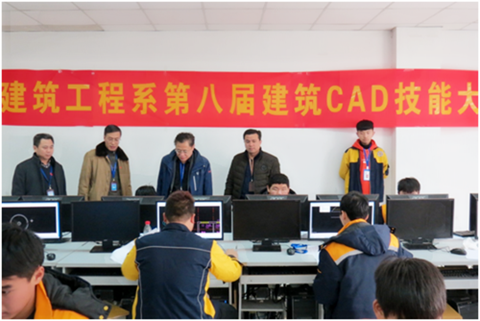 为进一步普及建筑CAD绘图技术,提升学生建筑CAD技能应用水平,促进学院建筑CAD教学再上新台阶,同时也为市、省级和国家级中等职业学院建筑CAD技能大赛选拔人才做准备。2017年12月8号下午,由建筑工程系举办的第八届CAD技能大赛在计算机中心举行。任建设副院长、吕良玉副院长、张齐欣院助、建筑工程系陆飞虎主任、杨继强书记和实训中心陈陆龙副主任到比赛现场观看了比赛。欧小佩、段淑娅和朱香茹等三位老师担当此次比赛的裁判。