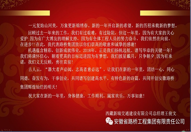 最后,王俊文总经理祝愿新的一年里路桥集团蒸蒸日上,西藏新瑞蓬勃发展!