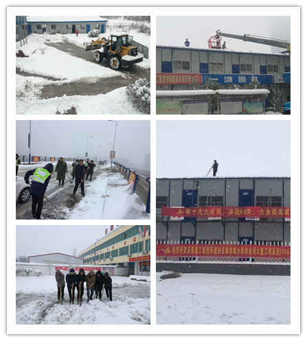 公司所属各工管部、项目部按照事先准备的雪天安全生产应急预案,有条不紊开展积雪清扫工作。所属项目部主要负责人亲自带队、分工负责,调动机械设备,对施工现场道路、项目部办公区屋顶积雪等进行清扫。大家积极踊跃,不畏严寒,挥舞着铁锹和笤帚,你铲我扫,配合默契。经过持续半天的奋斗,项目人员不仅将项目部积雪清扫干净,还积极参与了施工路段及街道上的积雪清扫,极大的方便了过往车辆和行人,保障了交通顺畅和群众出行安全,赢得了人民群众的普遍赞赏。