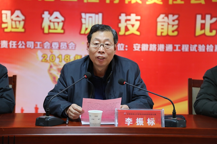 安徽路港公司董事长、总经理李振标出席开幕式并发表讲话。他指出,此次技能比赛是广大试验人员展现精神风采和技能水平的一个公平竞技平台,是公司试验技术能力的全方位展现,对加快推进公司试验人员队伍建设上台阶、全面促进公司试验工作整体上水平起着重要作用。希望参赛选手严格遵守比赛规则,赛出风格、赛出水平,以扎实的理论功底、良好的心理素质和规范的操作技术,充分展示安徽路港试验检测人员的良好精神风貌和精湛技术水平。