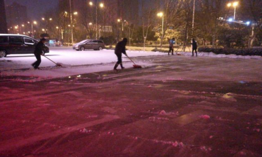 事实上,这一次,物业“守夜人”角色,都是提前进入并始终在位的。安保夜班工作人员加大巡查,提前广撒融雪剂,每隔两小时对地面积雪进行清除;工程师傅24小时值班,并着力加大夜间电力供应系统检查;所有管理人员和基层员工均提前两个小时到岗,合力清除积雪,使得安建大厦主要出入口和车辆通道畅通无阻,最大程度地削弱了风雪对驻厦单位工作员工上下班的影响。