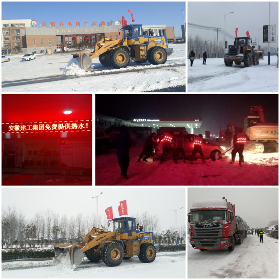 25日,舒城第二工管部也早早做好应急准备,组织工管部全体管理人员及班组,维护好道路通行秩序,动用大型设备,沿县城干道铲雪除冰。项目部全体人员以雪为令,边下边清,雪停路净,为县城居民出行扫出一条安全通道。项目部后勤保障部门保障热水供应,义务推车为沿线车辆司机行人免费提供便利。