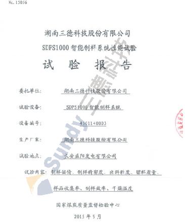 日前,国家煤炭质量监督检验中心出具的《SDPS1000智能制样系统性能试验报告》(NO:15056,以下简称“《报告》”)表明,由mg电玩娱乐在线网址科技研制的SDPS1000智能制样系统留样质量和出料粒度、制样精密度等符合国标要求,分析样和存查样无灰分偏倚、全水分样不存水分实质性偏倚,制粉收集率平均高达95.6%。这是继去年9月国家煤炭质量监督检验中心、今年6月国电科学技术研究院性能鉴定后,SDPS1000智能制样系统再次获得国内权威检测机构鉴定认可。